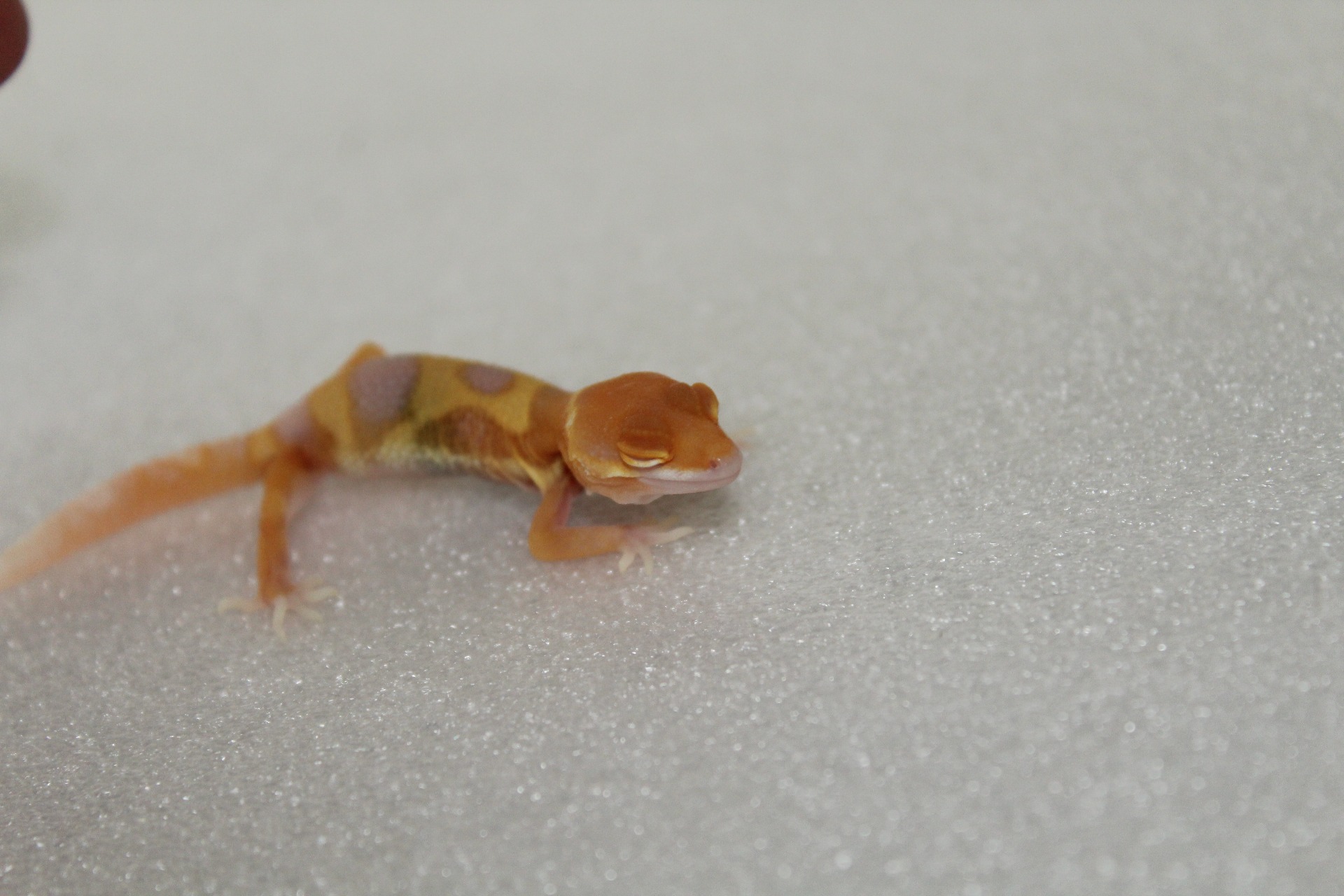 Gekončík má výrazně oranžovou barvu