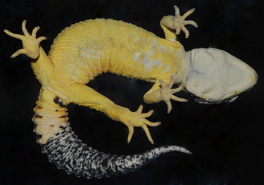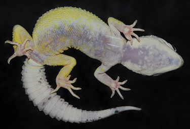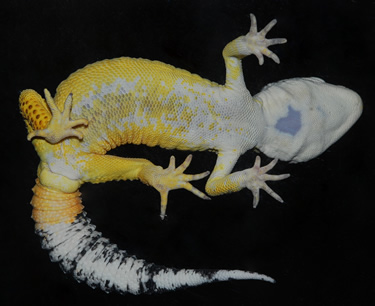 Co dělá Super LF (homozygotní forma genu LF) ve fenotypu? Na základě našich pozorování v našem chovu se domníváme, že LF je neúplným dominantním genem (co -dominantní ). LF a Super LF fungují podobně jako gen Mack Snow. (Heterozygotní Mack Snow nese žlutou barvu a Super Mack snow nemá na sobě žlutou). S LF a Super LF se neúplný dominantní gen řídí opačně, přidá barvu místo toho, aby ji skryl. Gen LF přidává do těla bílou barvu. Bílá barva způsobuje, že žlutá nebo oranžová vypadají tak zářivě a jasně v LF. Super LF má ještě více bílé barvy na hlavě, těle. Množství bílé barvy v Super LF v našem chovu je variabilní, avšak v porovnání s LF vidíme celkové zvýšení bílé barvy. Některé LF mají žluté nebo oranžové břicha. Další významný rozdíl mezi LF a Super LF se nachází v oku. Oči na LF jsou světlejší a než u ostatních mutacích, ale množství bílé v oku je proměnlivé mezi jednotlivci. Vysoce výrazní zvířata mají pěkné jasně bílé oči a zvířata s nízkou expresivitou mají tmavší oči. V Super LF se zdá, že všechny mají velmi čisté, jasně bílé oči.